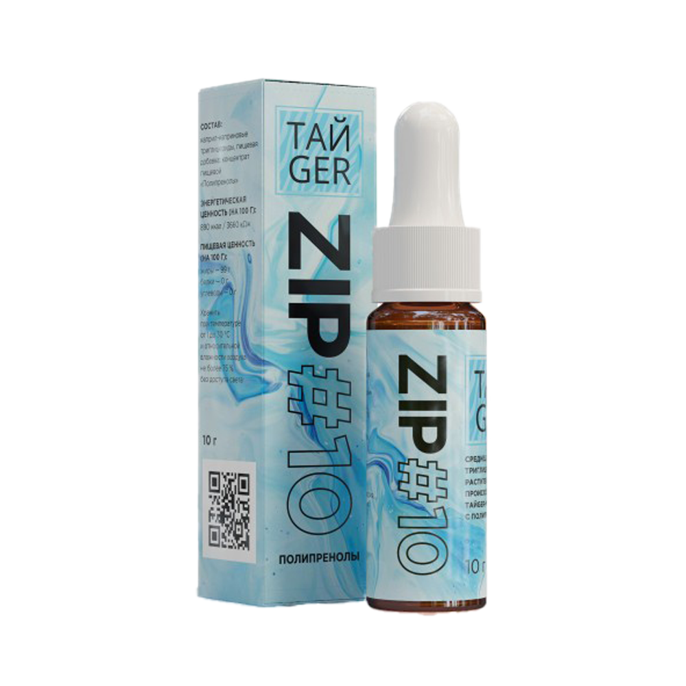ZIP#10 ТайGer – полипренолы в сочетании с каприл-каприновыми триглицеридами для улучшения работы мозга, печени, эндокринной системы. Сублингвальный способ приёма обеспечивает максимальную биодоступность полипренолов в системной циркуляции, минуя барьеры желудка, кишечника и печени.