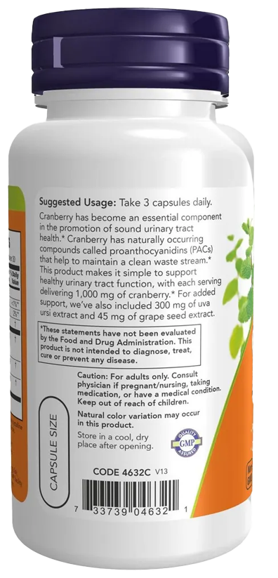 Каждая порция содержит 1000 мг клюквы. Для дополнительного эффекта мы добавили 300 мг экстракта толокнянки и 45 мг экстракта виноградных косточек.