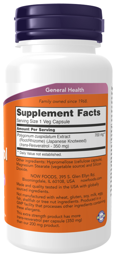 NOW Resveratrol 350 mg, 60 капсул