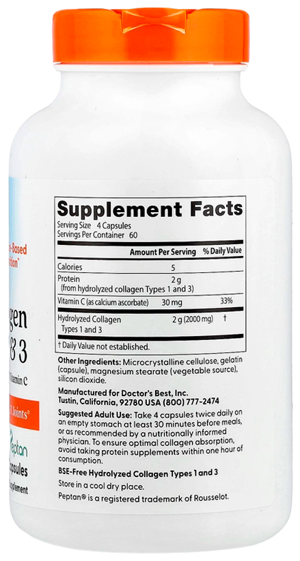 Коллаген с витамином С Doctor's Best Collagen Types 1&3 with Vitamin C 500 мг: