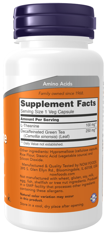 Теанин - это уникальная аминокислота, которая естественным образом содержится в чайном растении (Camellia sinensis).Теанин способствует расслаблению, сохраняя бдительность и способствует здоровой когнитивной функции. Теанин также может поддерживать здоровую функцию сосудов благодаря этому расслабляющему эффекту.