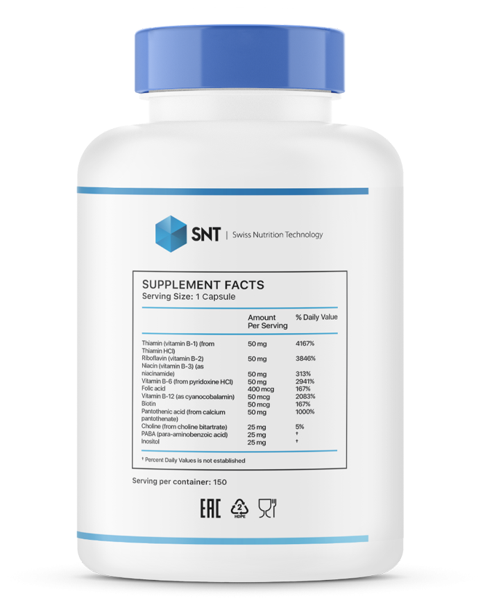 B-50 - это комплексная диетическая добавка, содержащая витамины группы B, включая тиамин (B1), рибофлавин (B2), ниацин (B3), пантотеновую кислоту (B5), пиридоксин (B6), биотин (B7), фолиевую кислоту (B9) и кобаламин (B12). Эти витамины играют ключевую роль в метаболизме энергии, поддержании нервной системы, укреплении иммунитета и улучшении общего состояния организма.