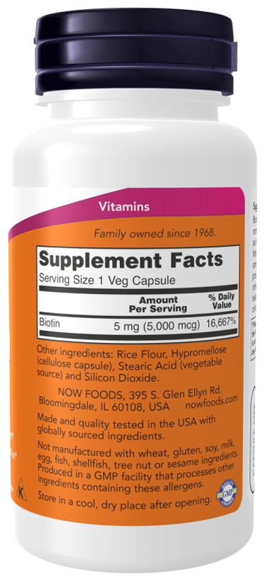 NOW Биотин 5000 мкг, 60 капсул